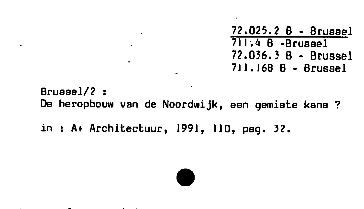 - Brussel/2 : De heropbouw van de Noordwijk, een gemiste kans ?
