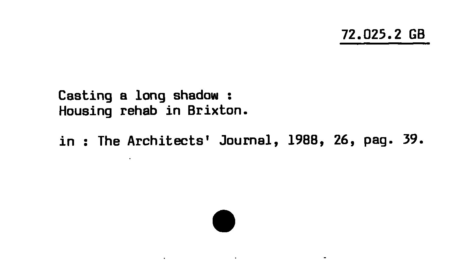Casting a long shadow : Housing rehab in Brixton
