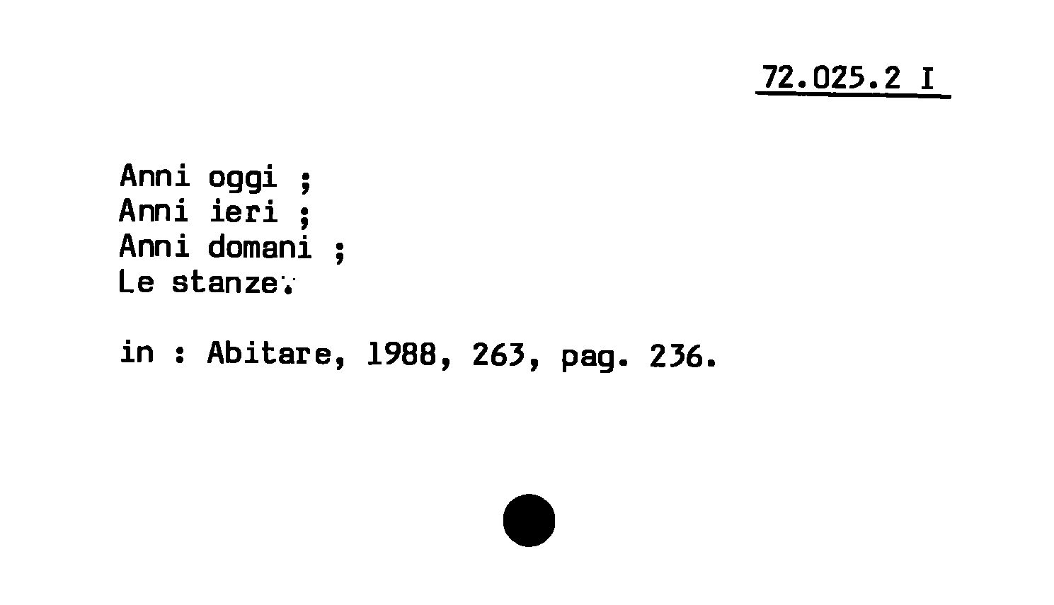 - Anni oggi : Anni ieri ; Anni domani