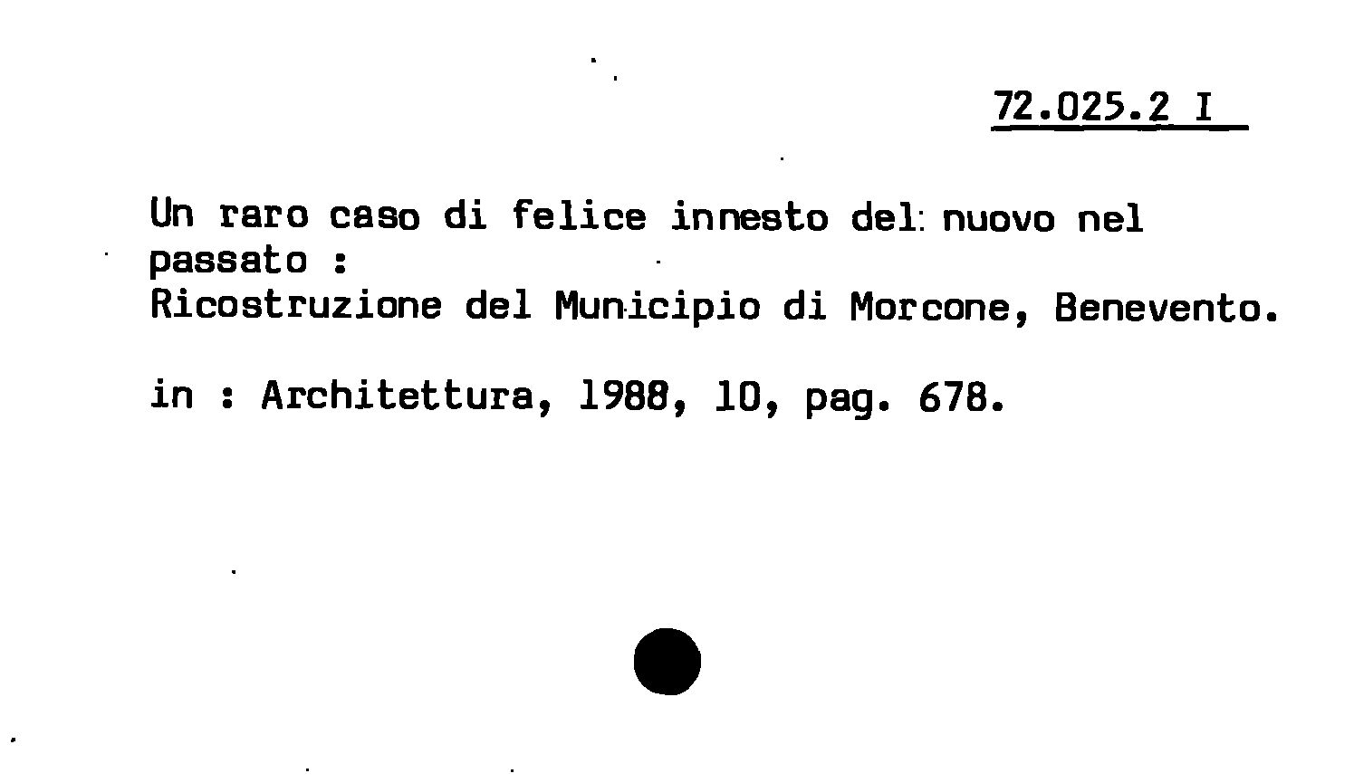 - Un raro caso di felice innesto del : nuovo nel passato ; Ricostruzione del Municipio di Morcone, Benevento