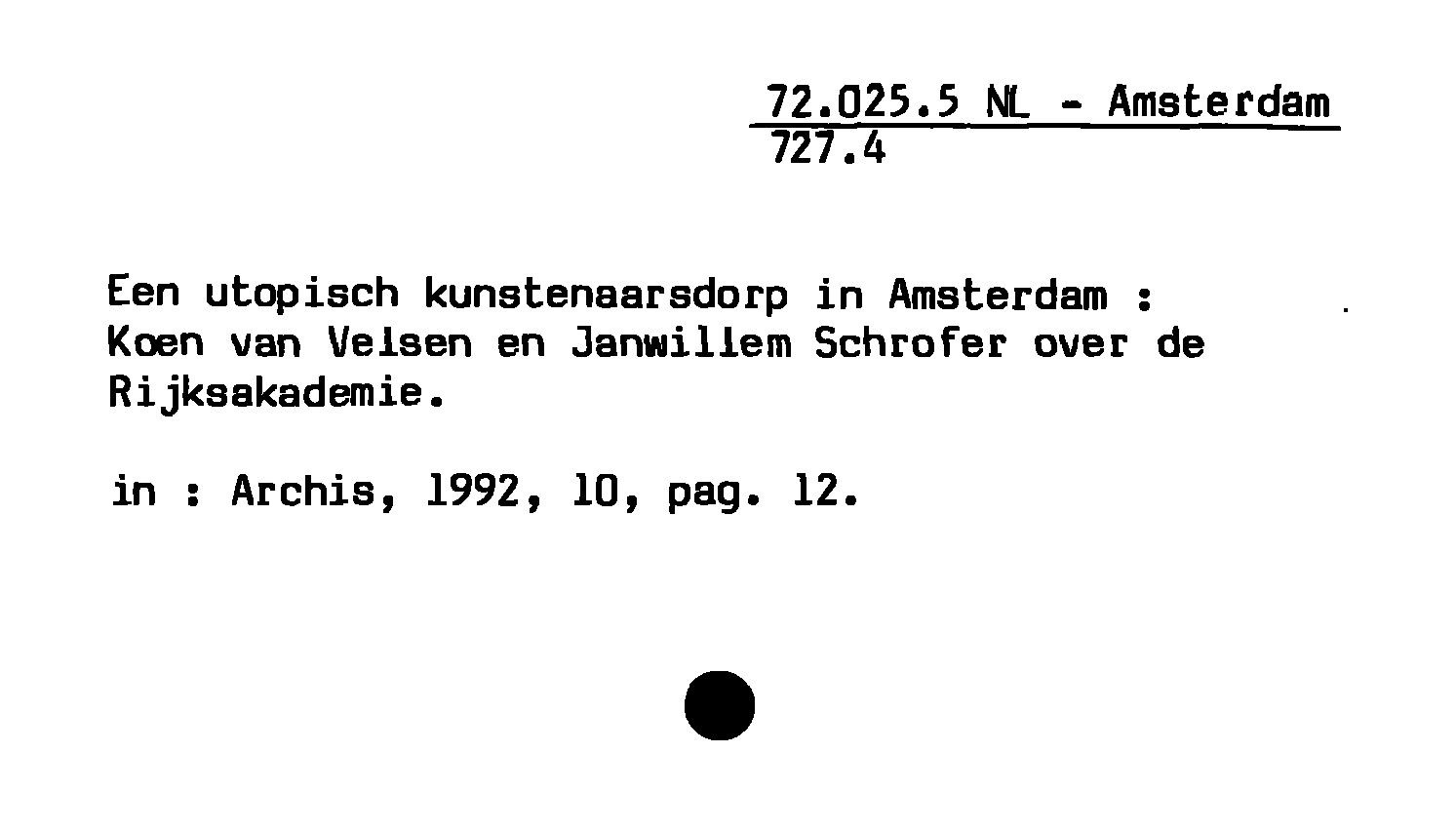 Een utopisch kunstenaarsdorp in Amsterdam : Koen van Velsen en Janwillem Schrofer over de Rijksakademie