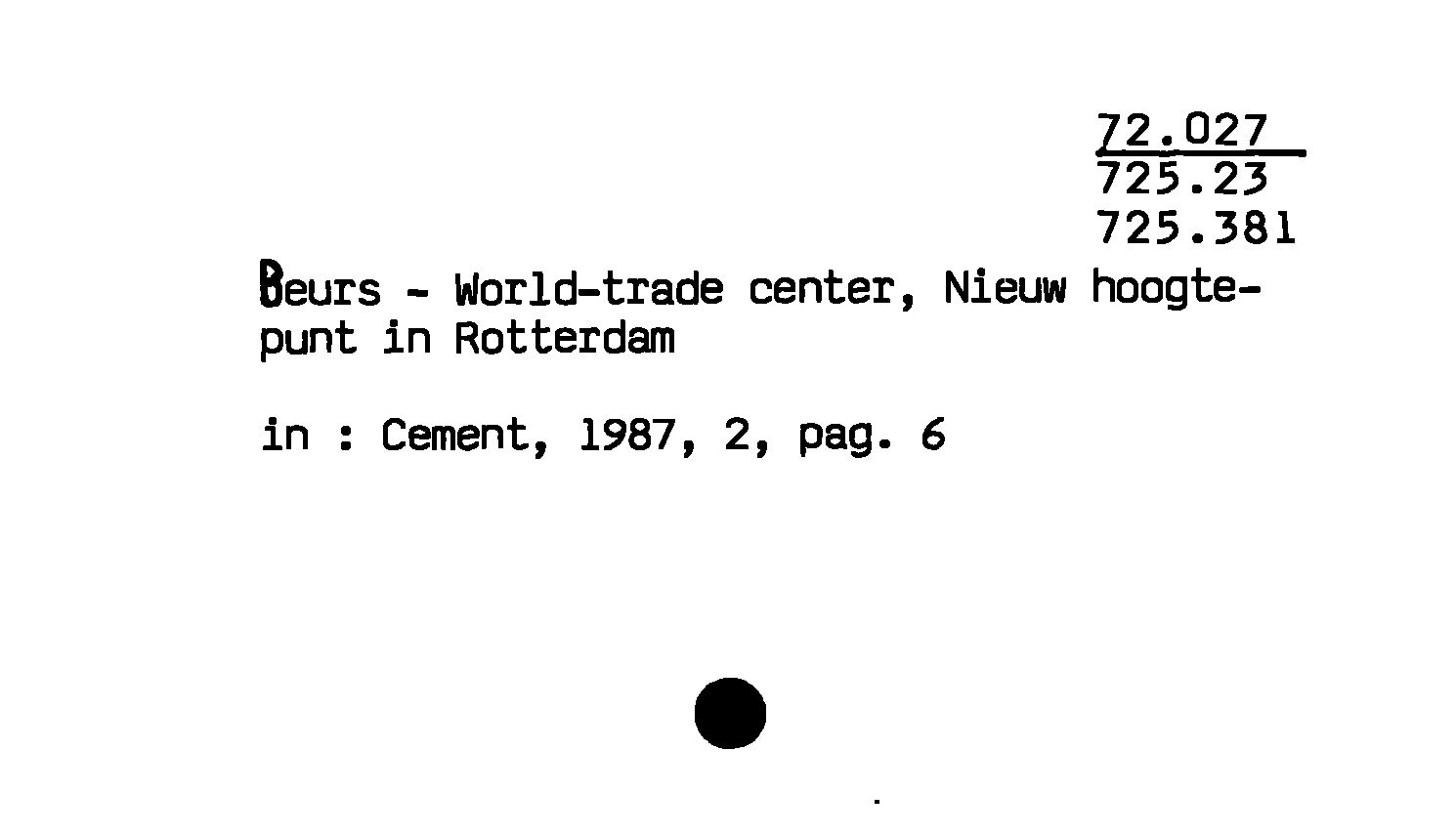 - Beurs - World-trade center, Nieuw hoogtepunt in Rotterdam