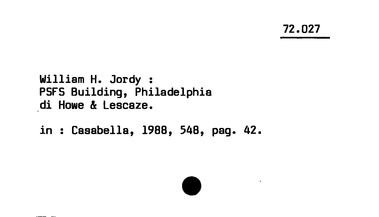 - William H. Jordy : PSFS Building, Philadelphia di Howe & Lescaze