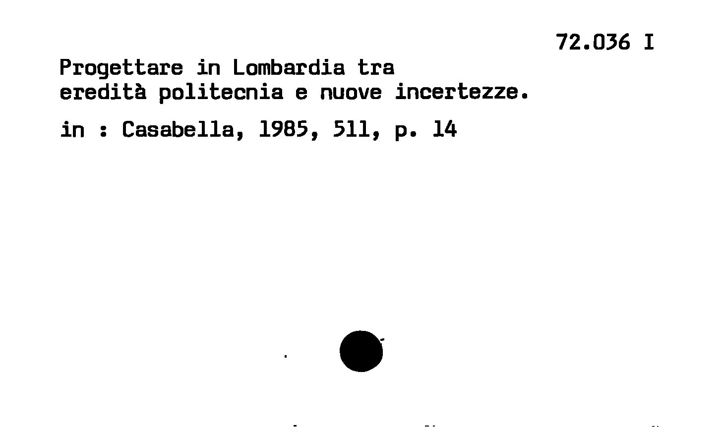 - Progettare in Lombaria tra eredita politecnia e nuove incertezze