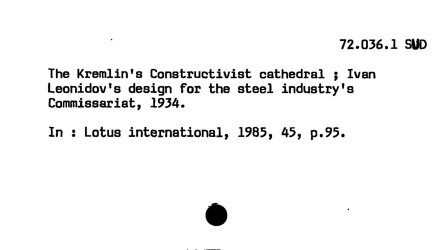 - The Kremlin's Constructivist cathedral : Ivan Leonidov's design for the steel industry's Commissariat, 1934