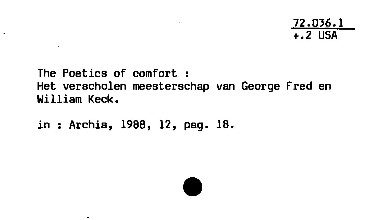- The Poetics of comfort : Het verscholen meesterschap van George Fred en William Keck