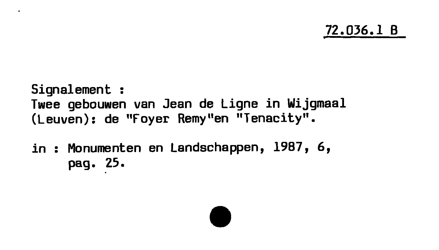 Signalement : Twee gebouwen van Jean de Ligne in Wijgmaal (Leuven) ; de "Foyer Remy"en "Tenacity"