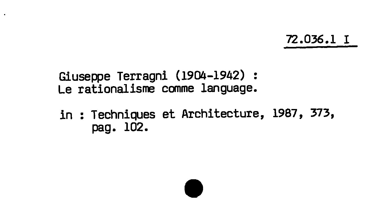 - Giuseppe Terragni (1904-1942) : Le rationalisme comme language