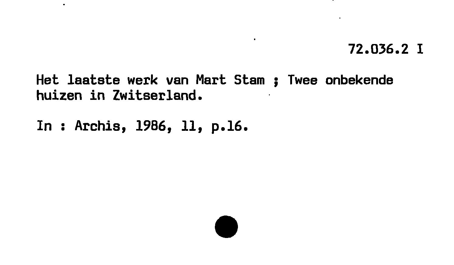 - Het laatste werk van Mart Stam : Twee onbekende huizen in Zwitserland