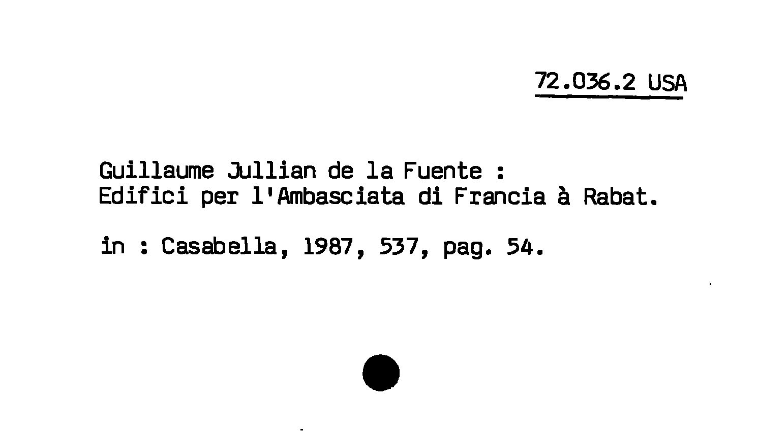 - Guillaume Jullian de la Fuente : Edifici per l'Ambasciata di Francia à Rabat