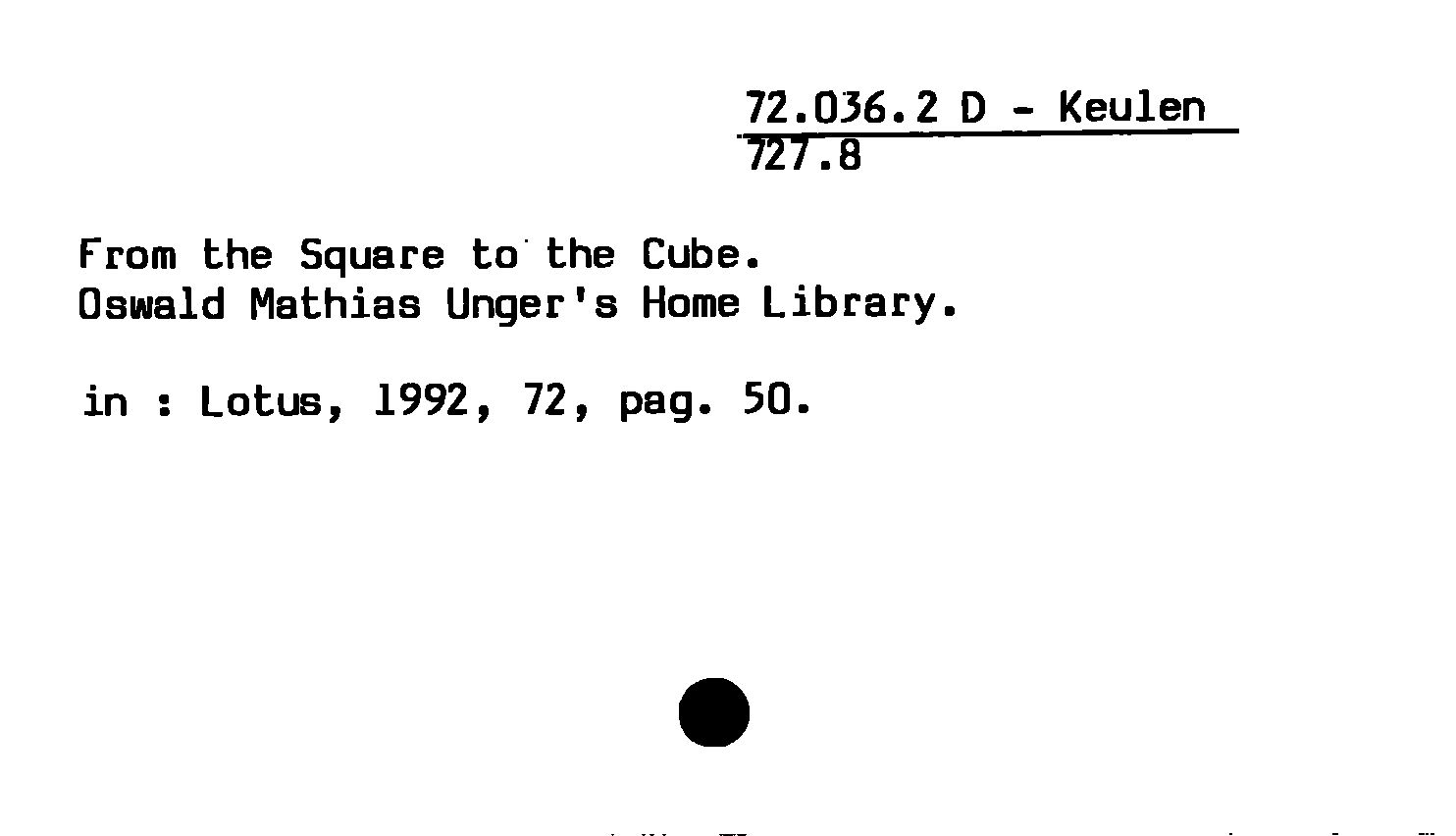 - From the Square to the Cube : Oswald Mathias Unger's Home Library