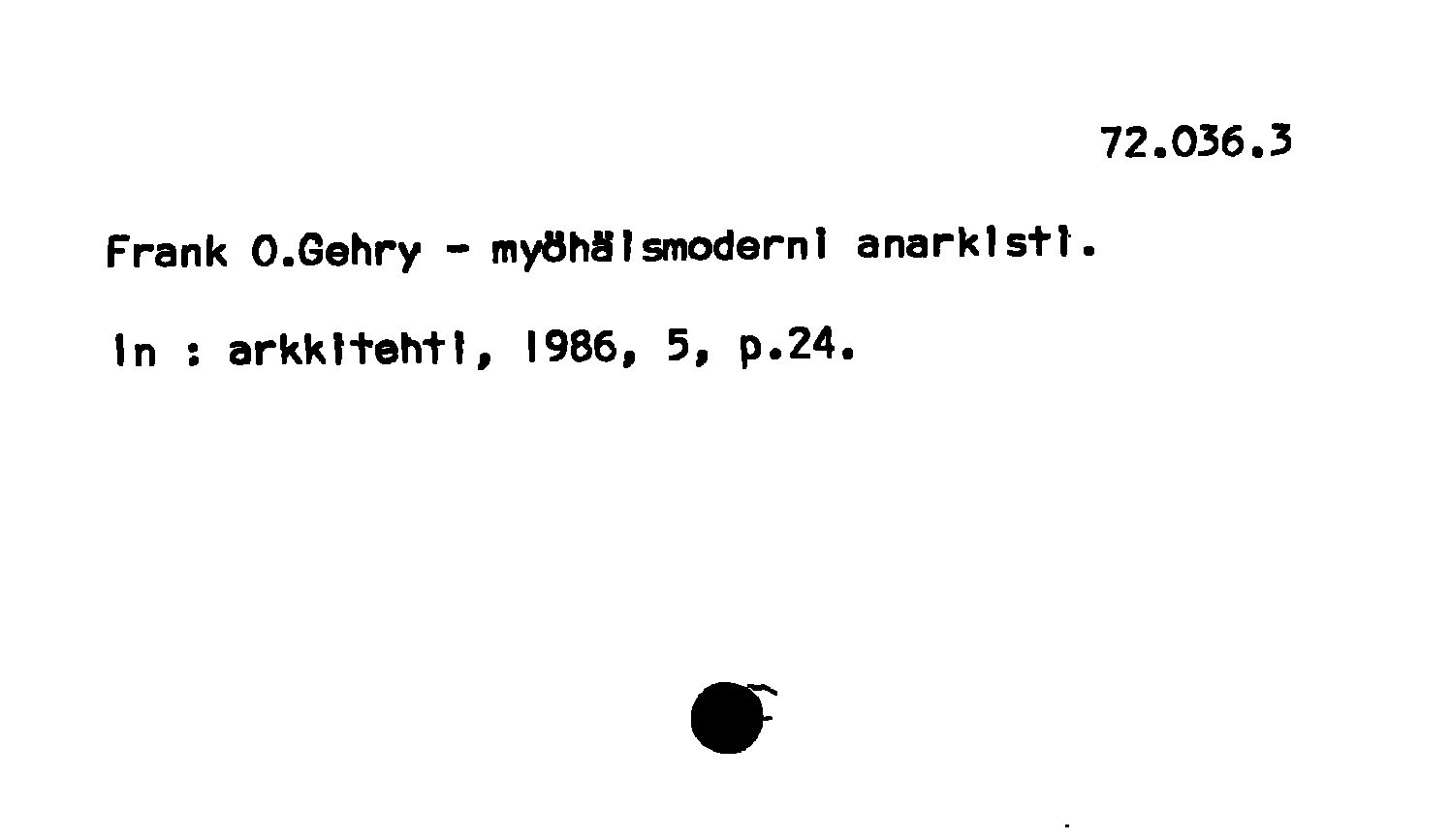 - Frank O.Gehry : myöhälsmoderni anarkisti