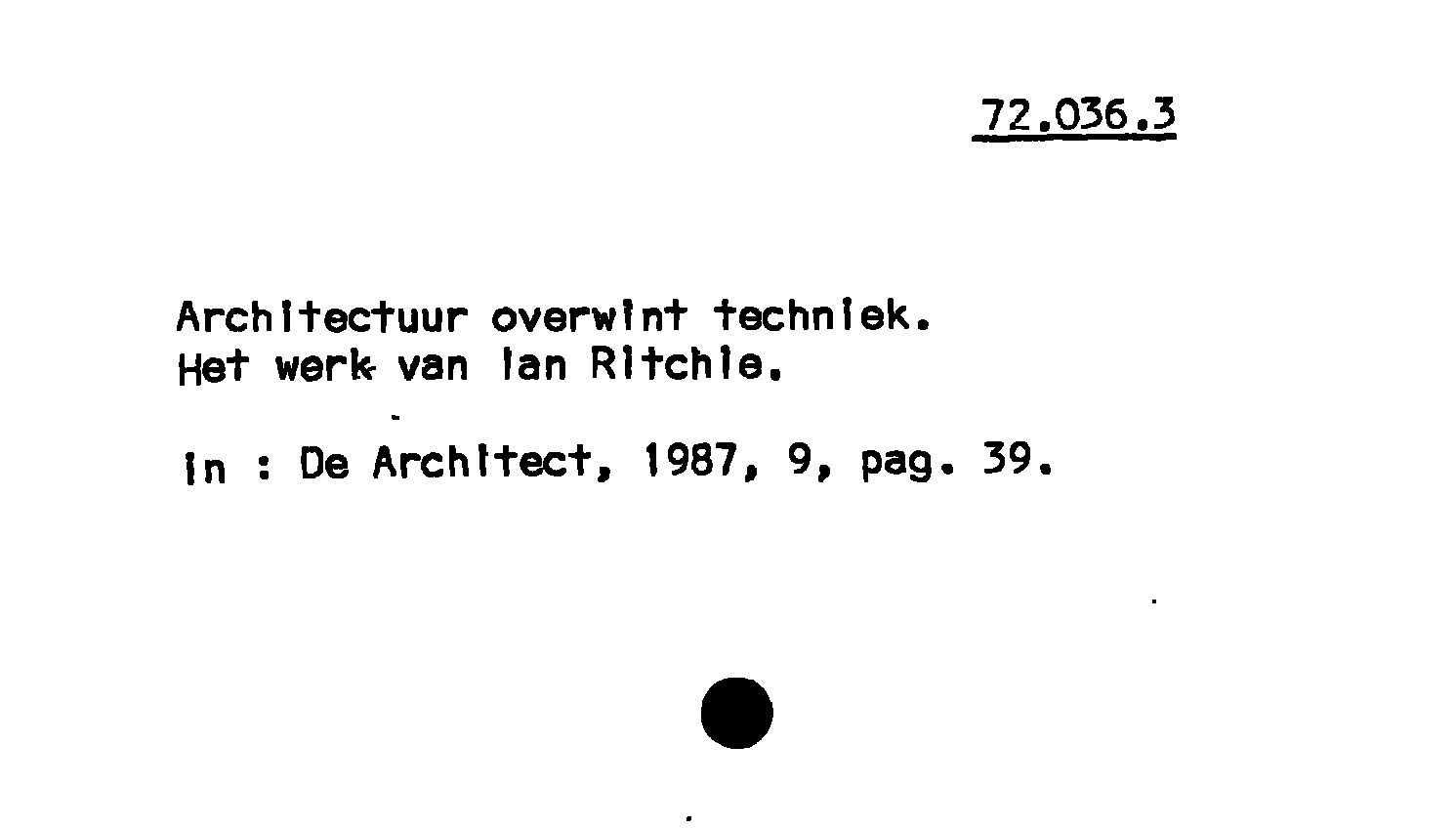 - Architectuur overwint techniek : Het werk van lan Ritchie