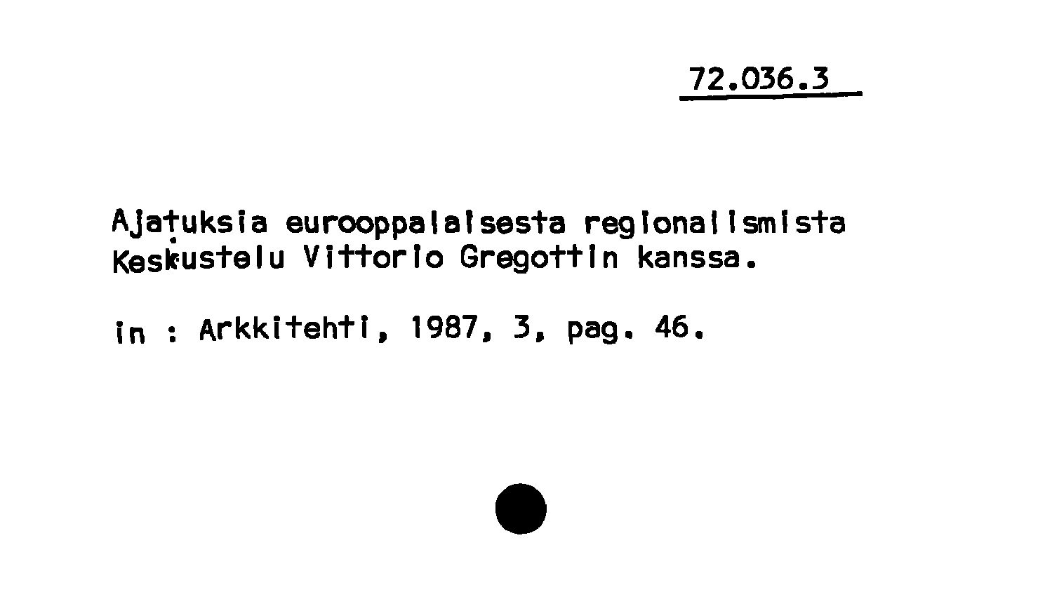- Ajatuksia eurooppalaisesta regionalIsmista Keskustelu Vittorio Gregottin kanssa