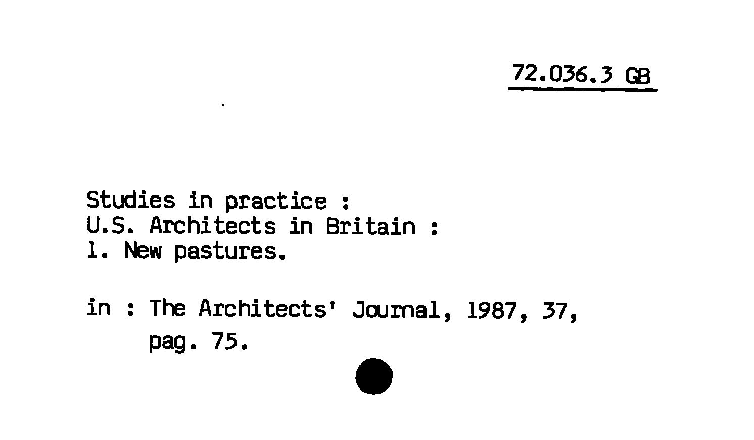 - Studies in practice : U.S. Architects in Britain ; 1. New pastures