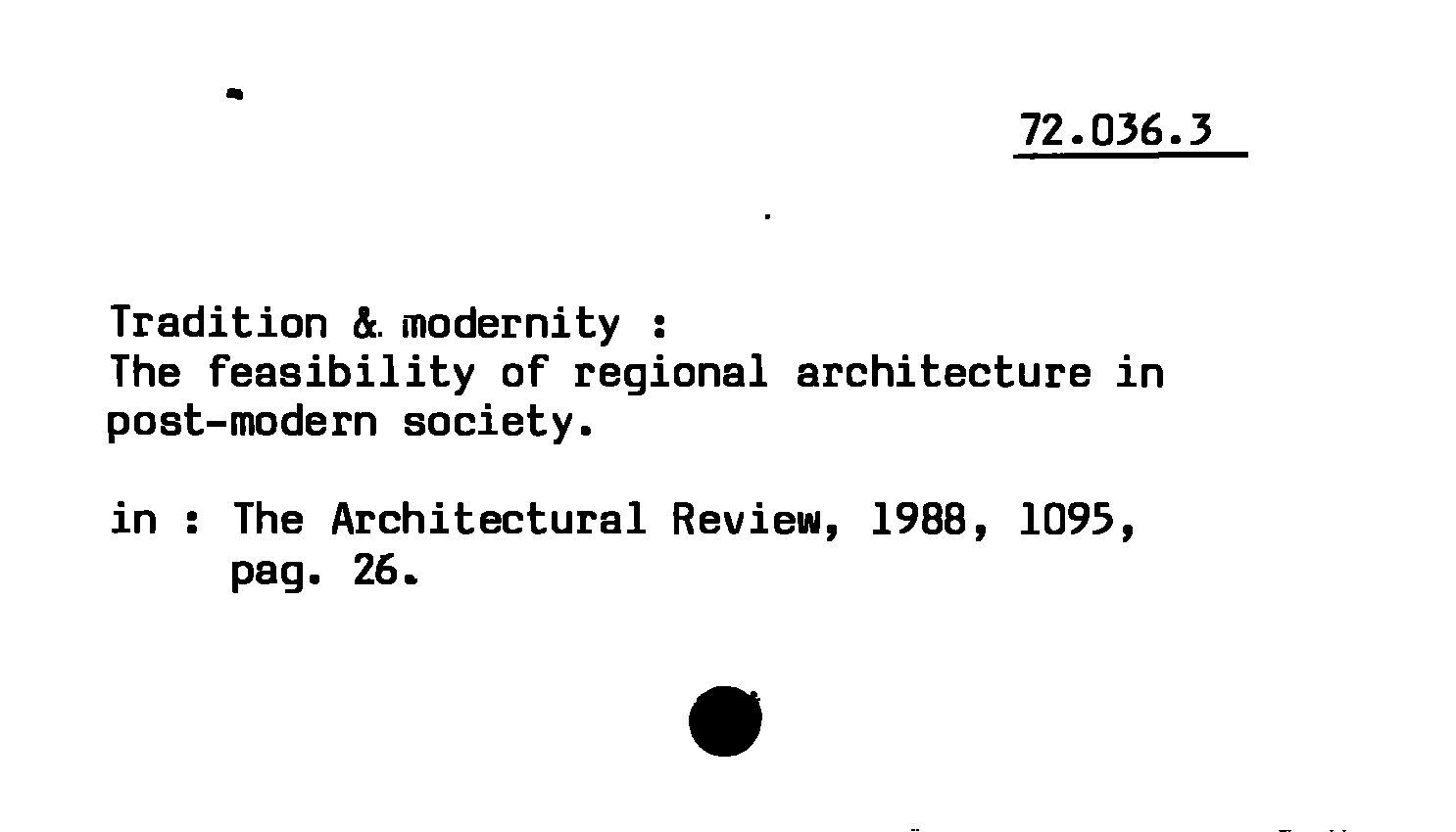 Tradition & modernity : The feasibility of regional architecture in post-modern society