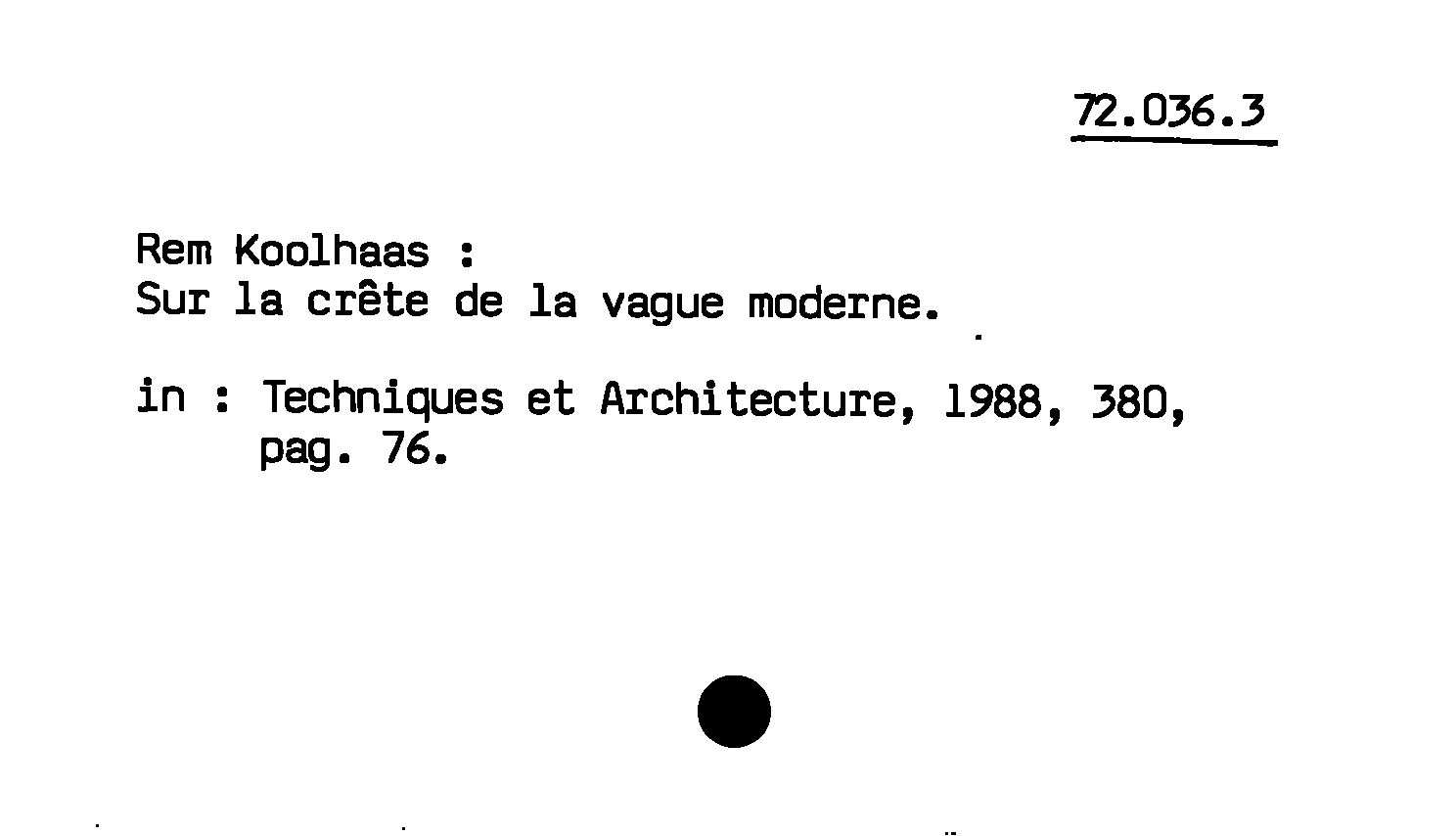 - Rem Koolhaas : Sur la crête de la vague moderne