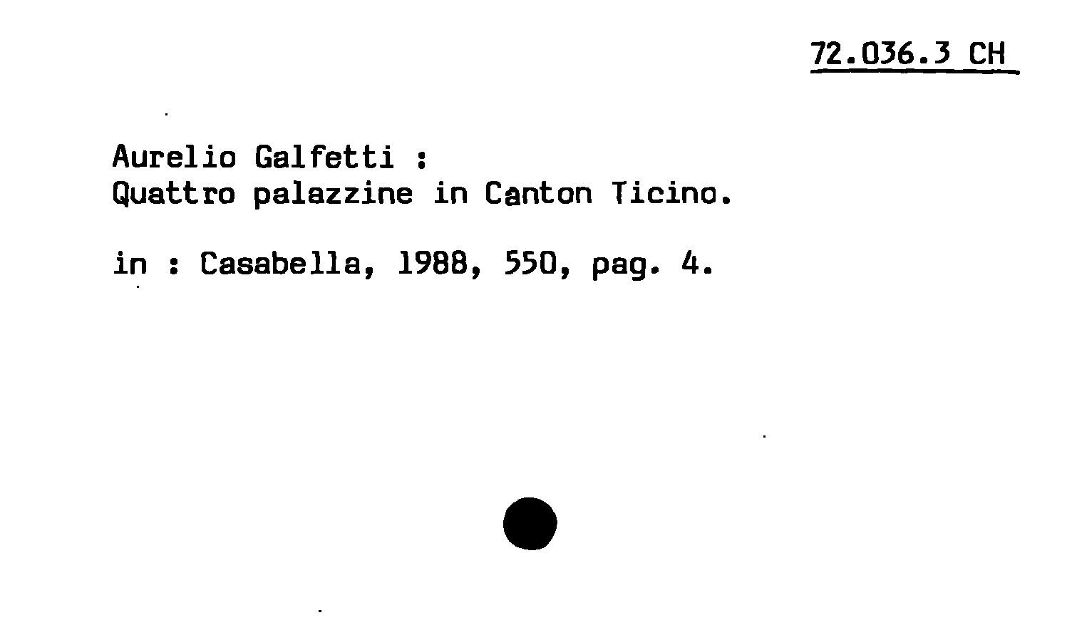 - Aurelio Galfetti : Quattro palazzine in Canton Ticino