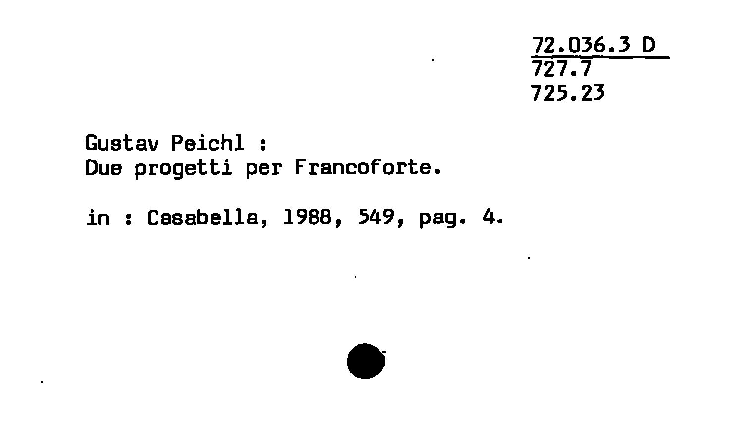 - Gustav Peichl : Due progetti per Francoforte