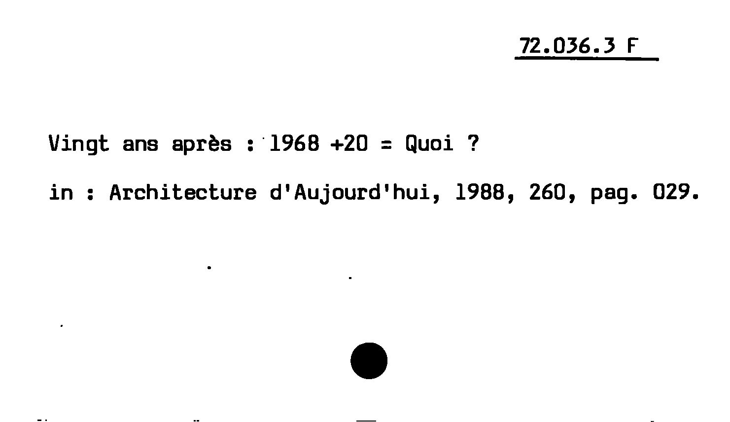 - Vingt ans après : 1968 +20 = Quoi ?