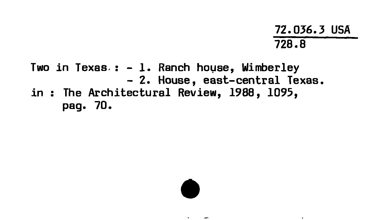 - Two in Texas : l. Ranch house, Uimberley ; 2. House, east-central Texas
