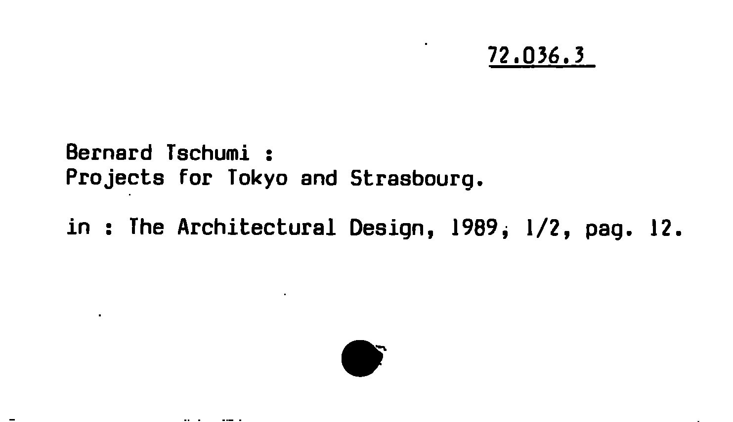 - Bernard Tschumi : Projects for Tokyo and Strasbourg
