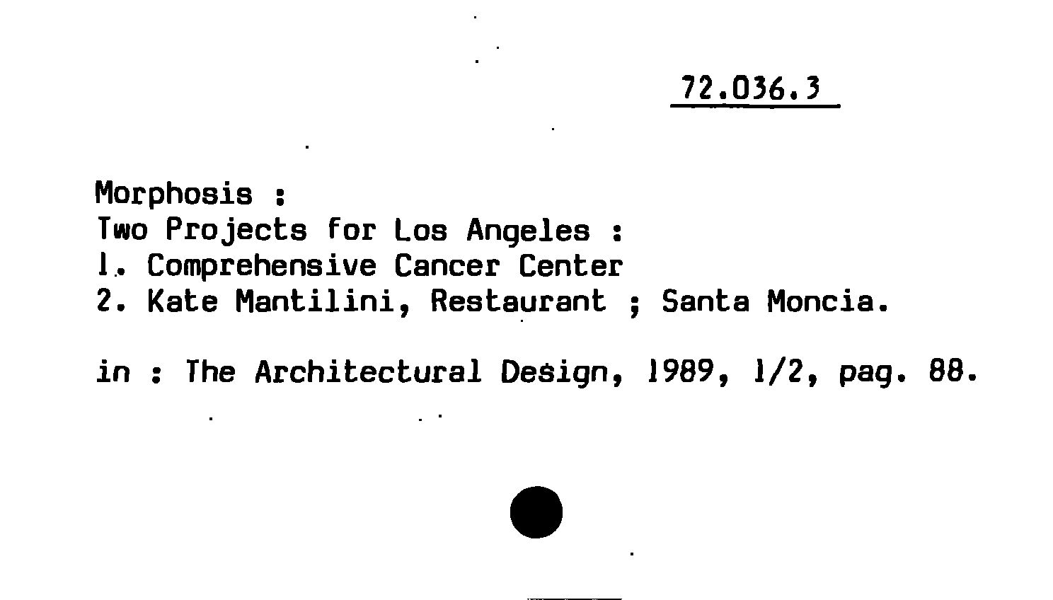 - Morphosis : Two Projects for Los Angeles ; 1. Comprehensive Cancer Center