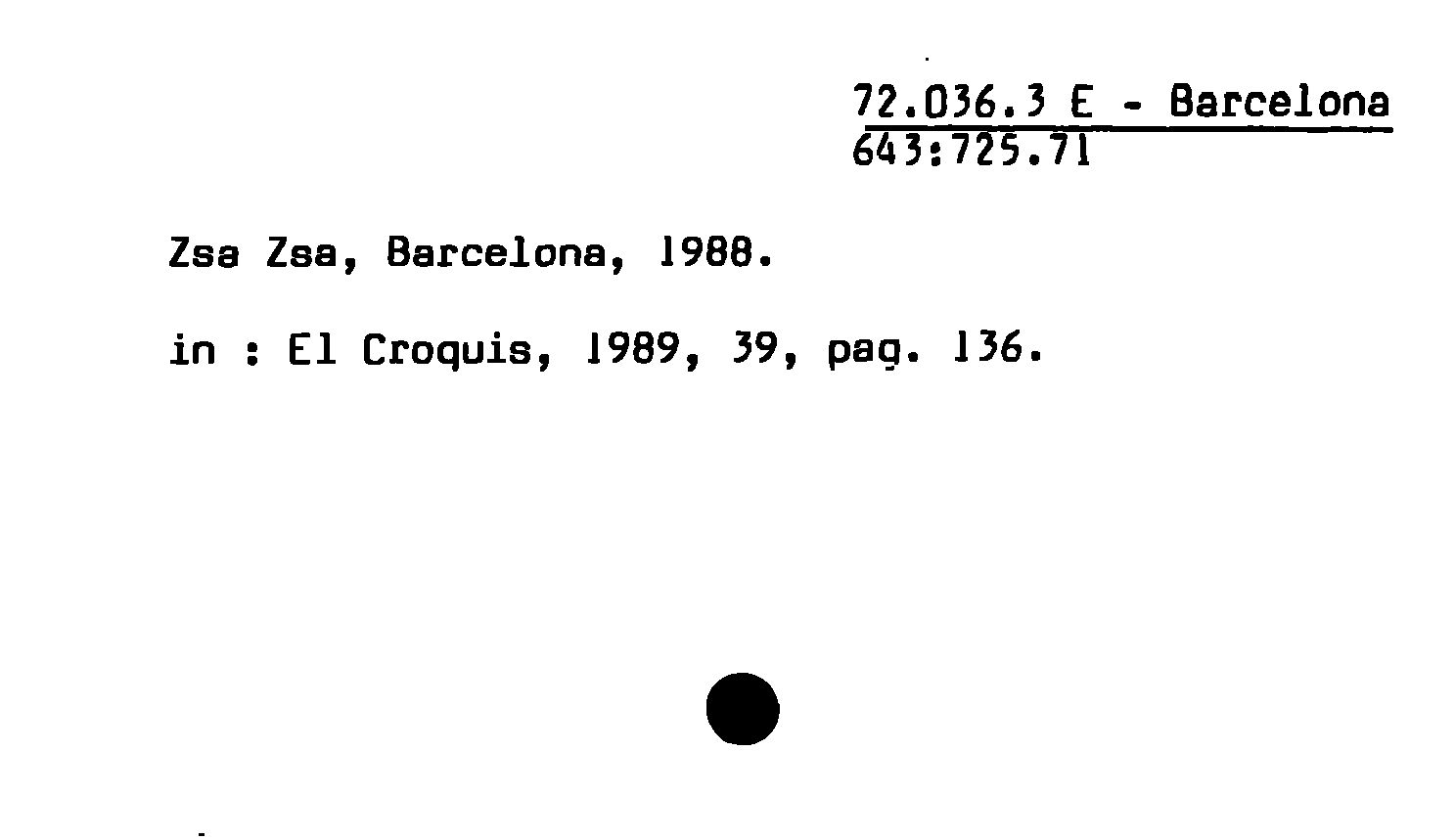 - Zsa Zsa, Barcelona, 1988