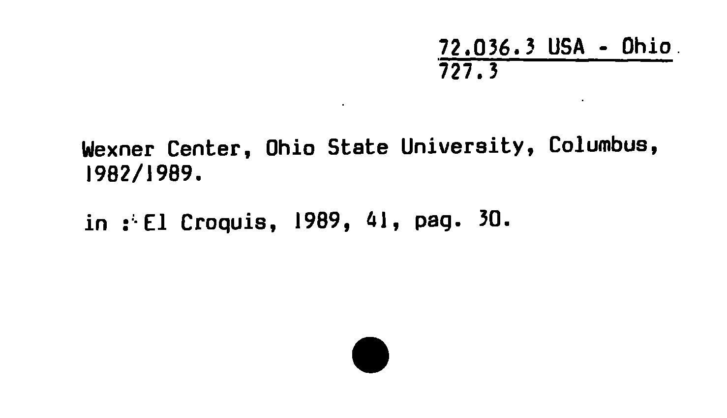 - Wexner Center, Ohio State University, Columbus, 1982/1989