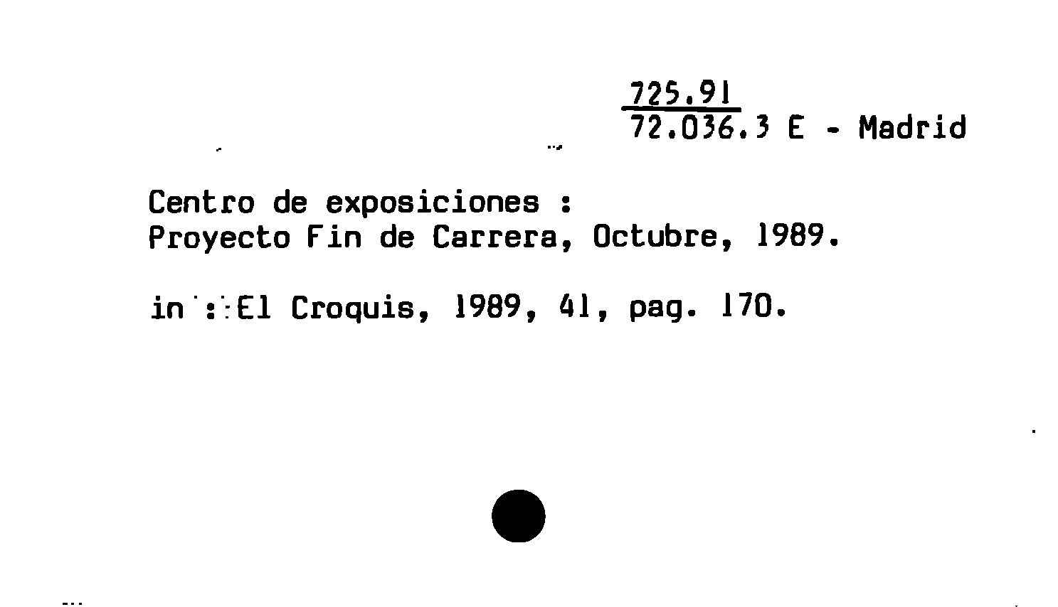 - Centro de exposiciones : Proyecto Fin de Carrera, Octubre, 1989