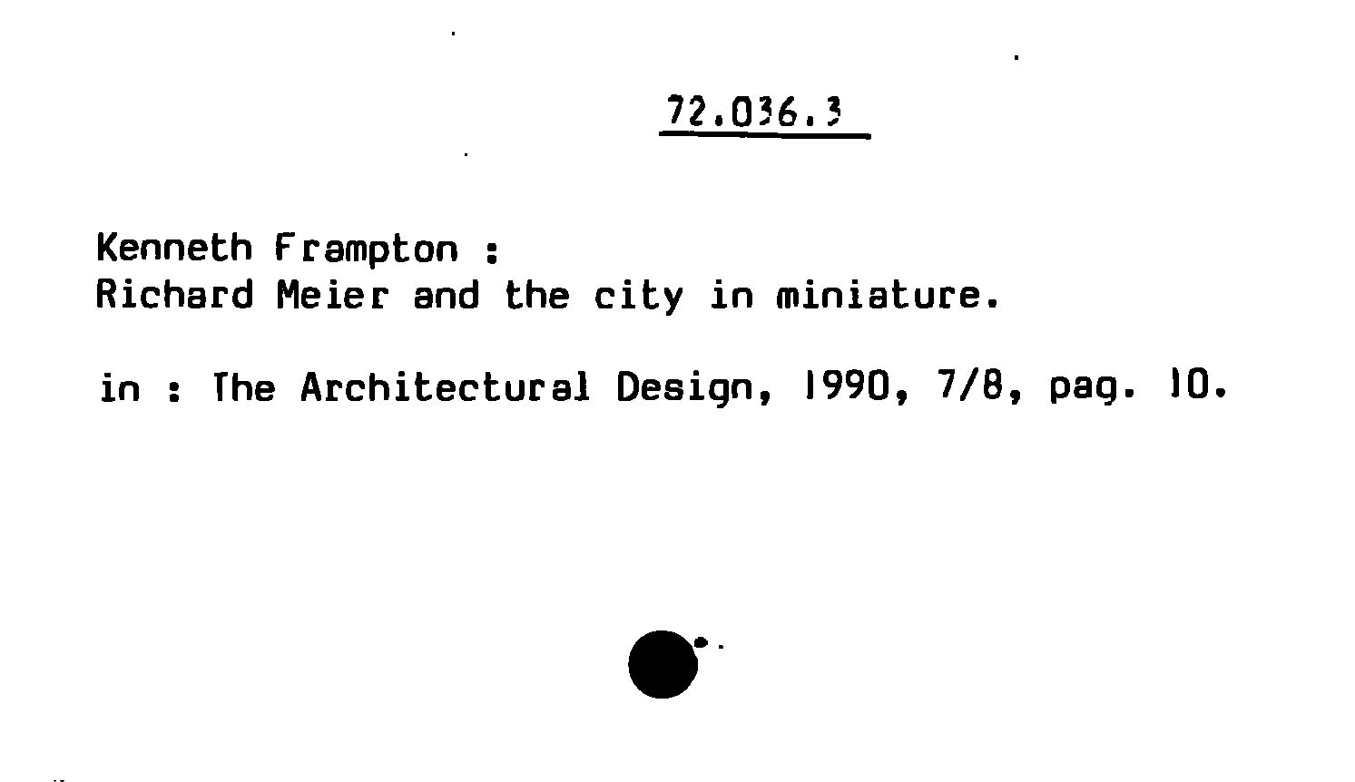 - Kenneth Frampton : Richard Meier and the city in miniature