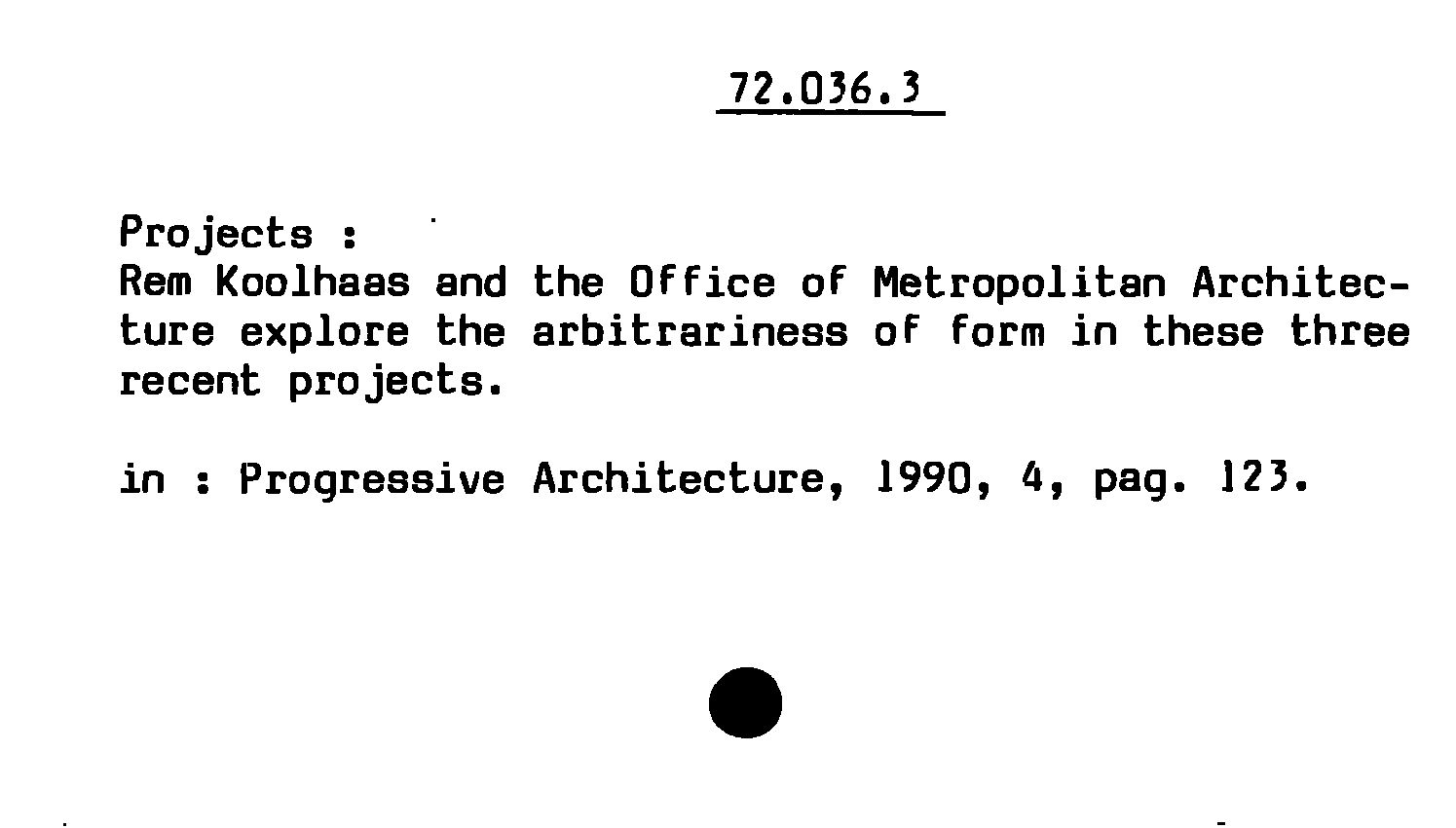 - Projects : Rem Koolhaas and the Office of Metropolitan Architecture explore the arbitrariness of form in these three recent projects