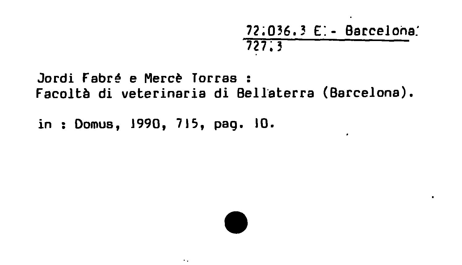 - Jordi Fabré e Mercè Torras : Facoltè di veterinaria di Bellaterra (Barcelona)
