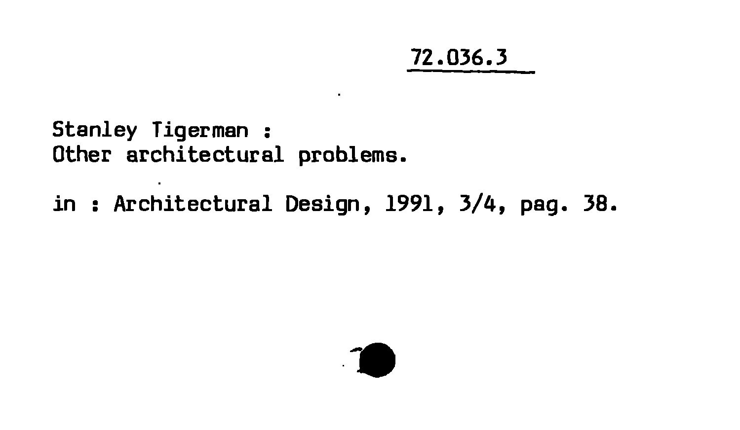 - Stanley Tigerman : Other architectural problems
