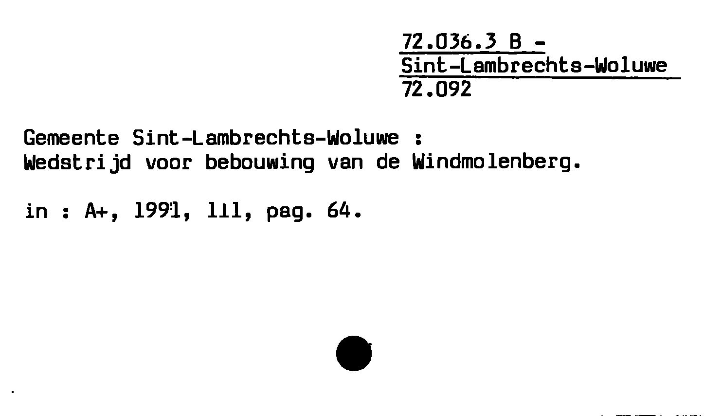 - Gemeente Sint-Lambrechts-Woluwe : wedstrijd voor bebouwing van de Windmolenberg
