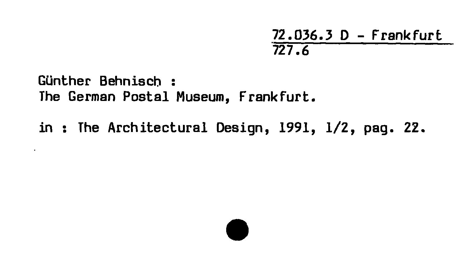 - Günther Behnisch : The German Postal Museum, Frankfurt