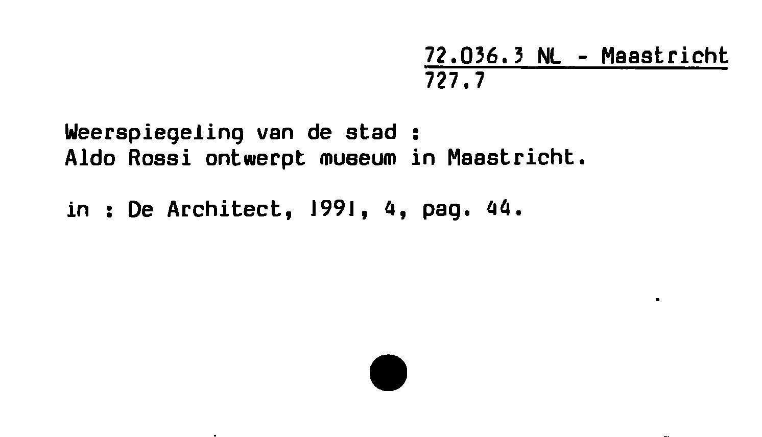 - weerspiegeling van de stad : Aldo Rossi ontwerpt museum in Maastricht