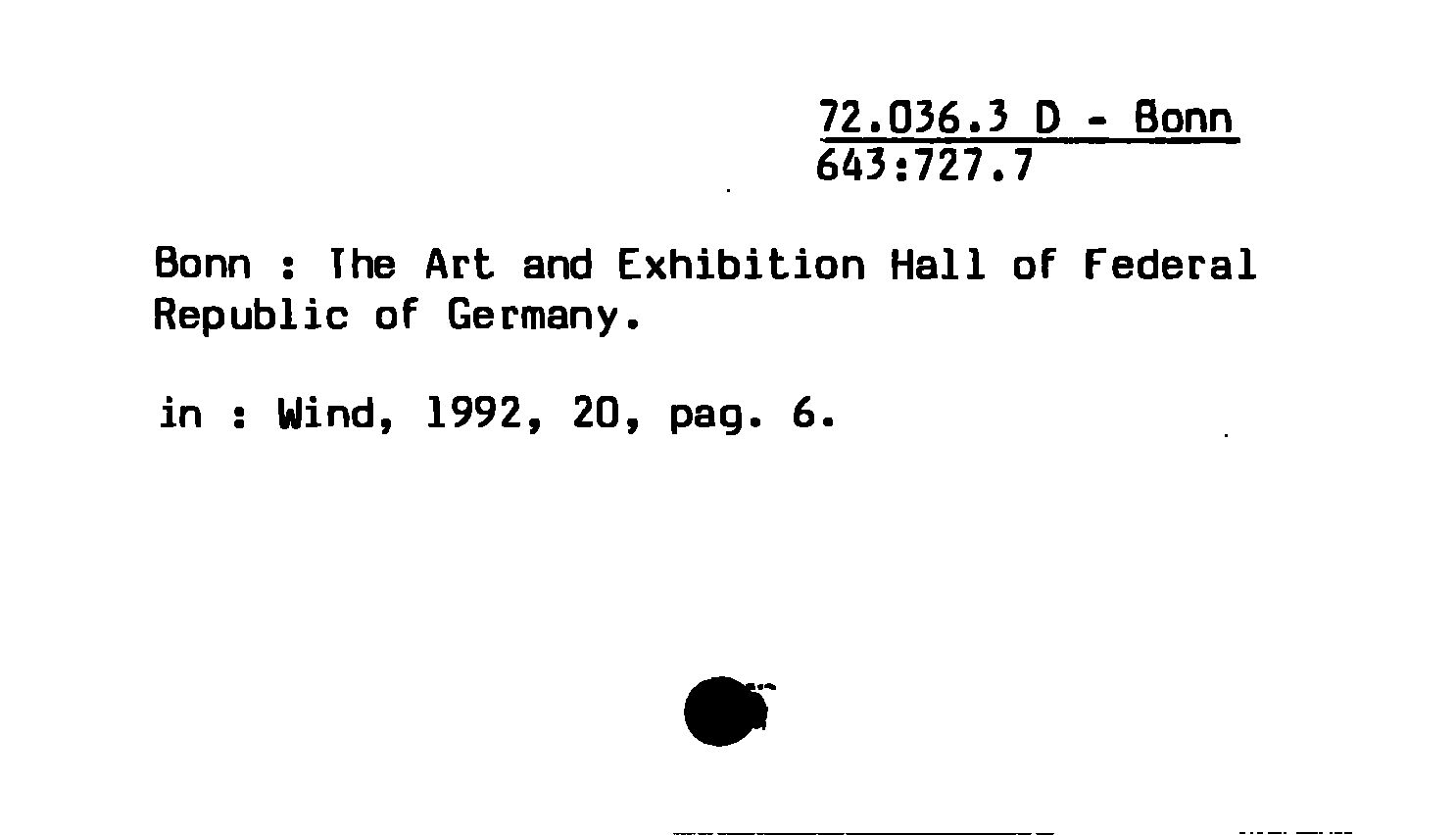 - Bonn : The Art and Exhibition Hall of Federal Republic of Germany