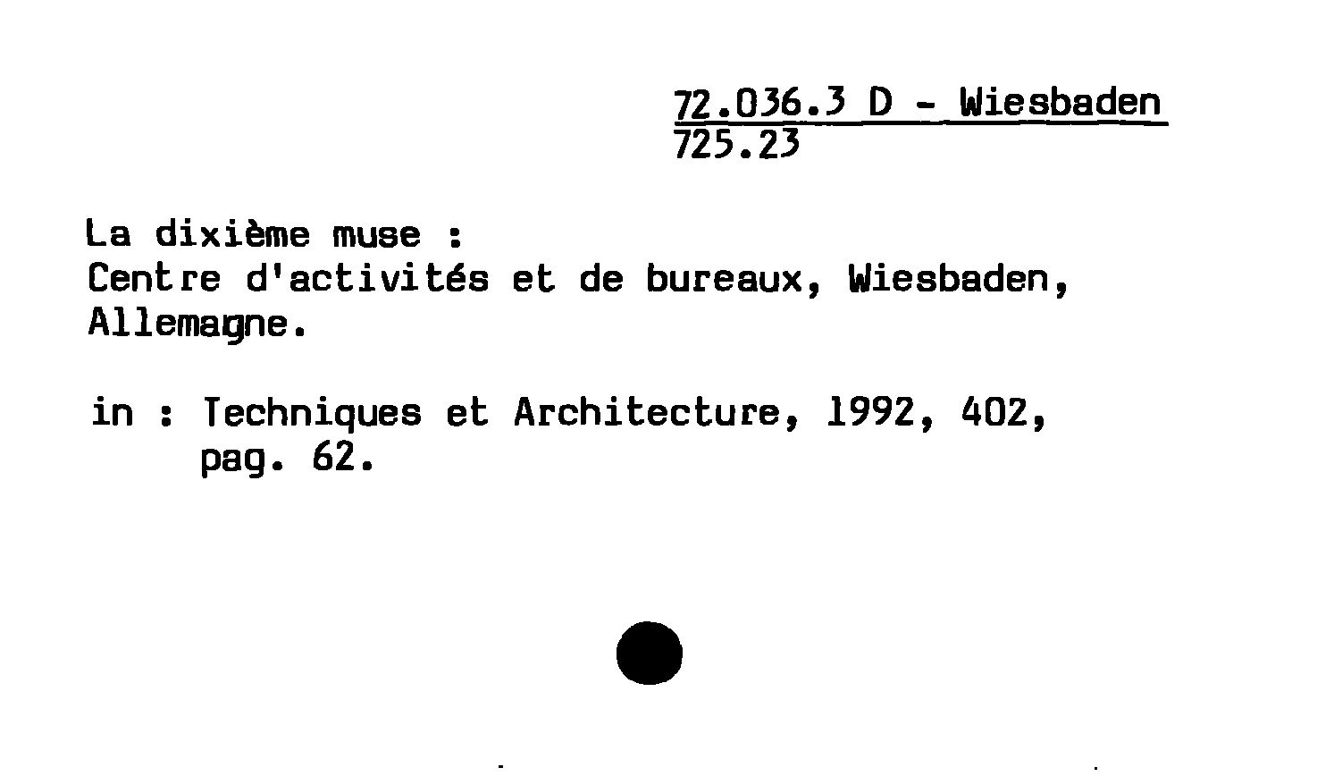 - La dixième muse : Centre d'activités et de bureaux, Wiesbaden, Allemagne