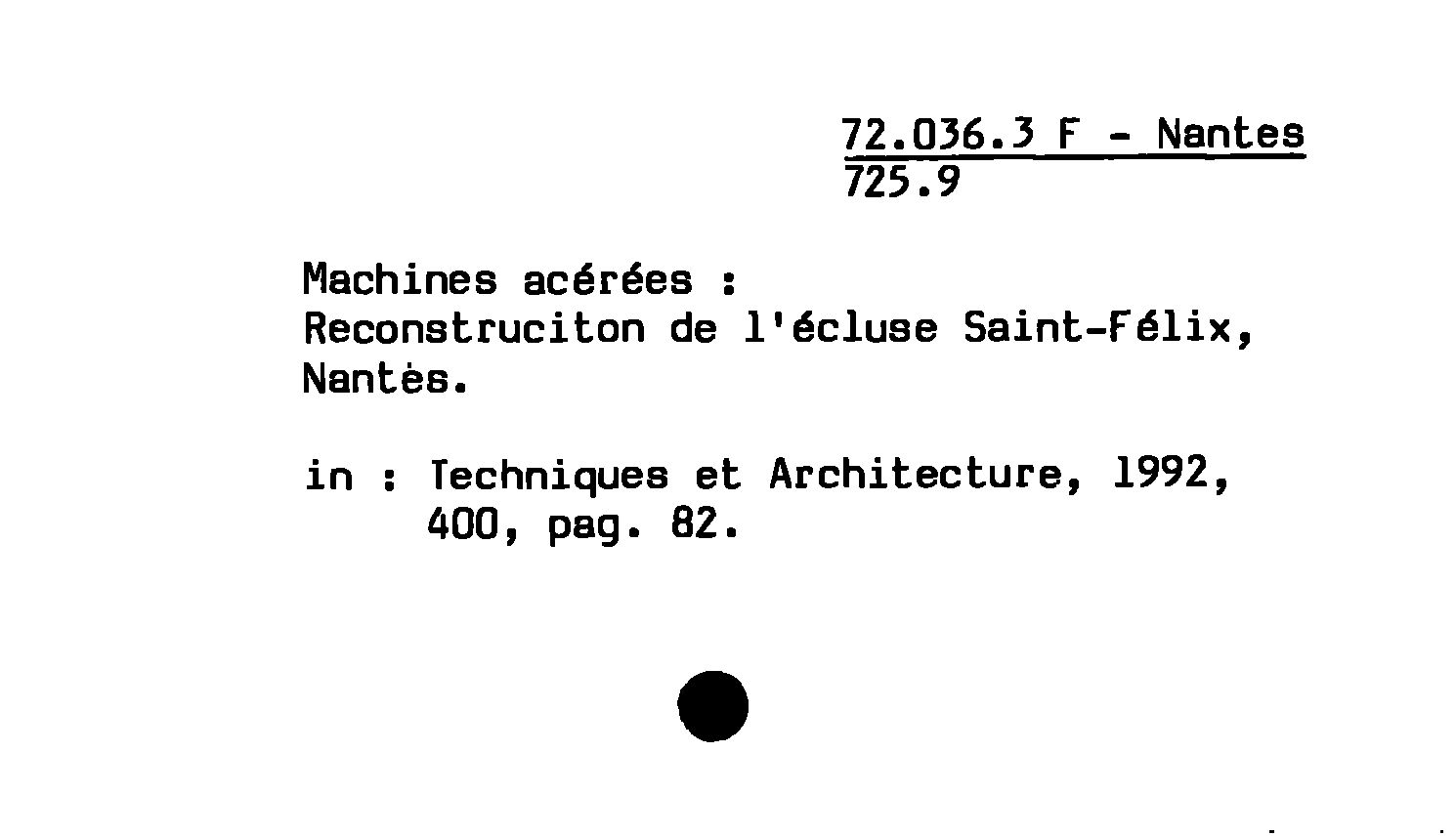 - Machines acérées : Reconstruciton de l'écluse Saint-Félix, Nantes