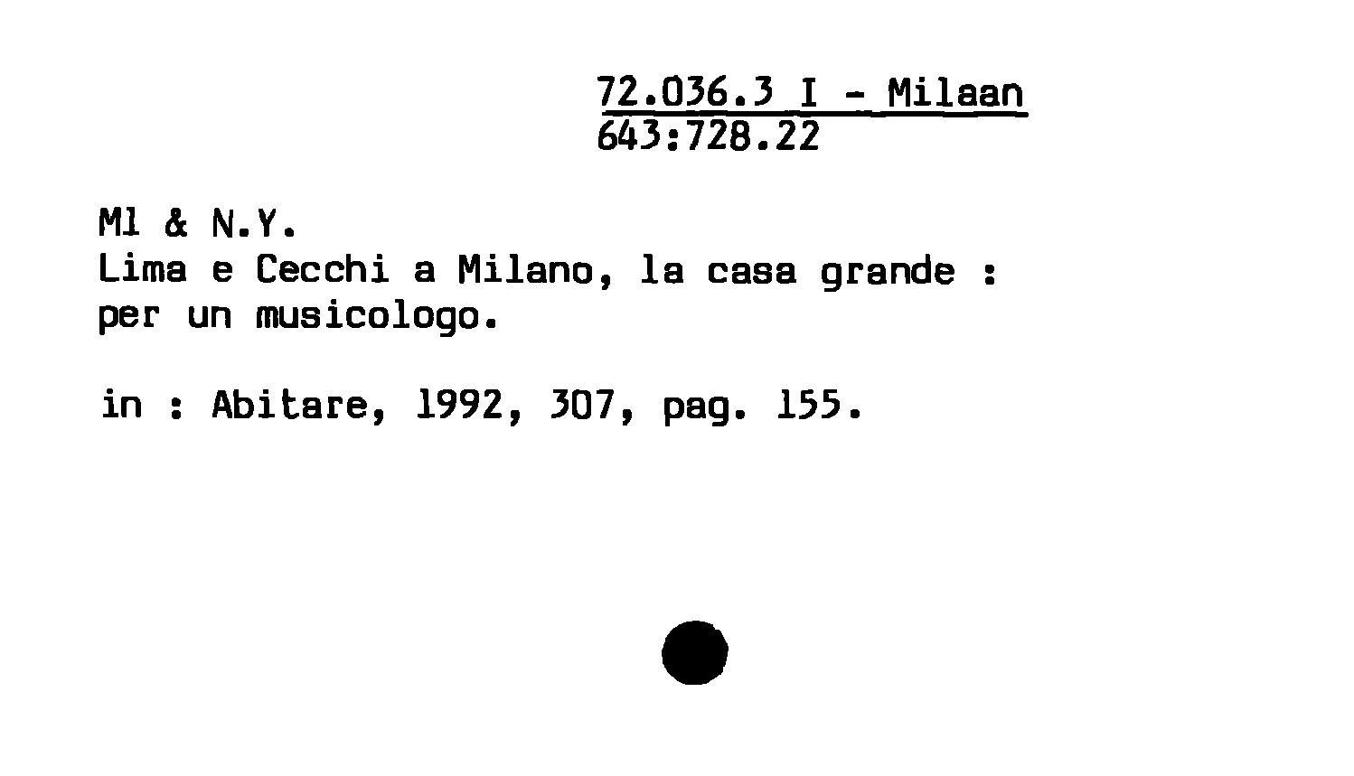 - M1 & N.Y : Lima e Cecchi a Milano, la casa grande ; per un musicologo
