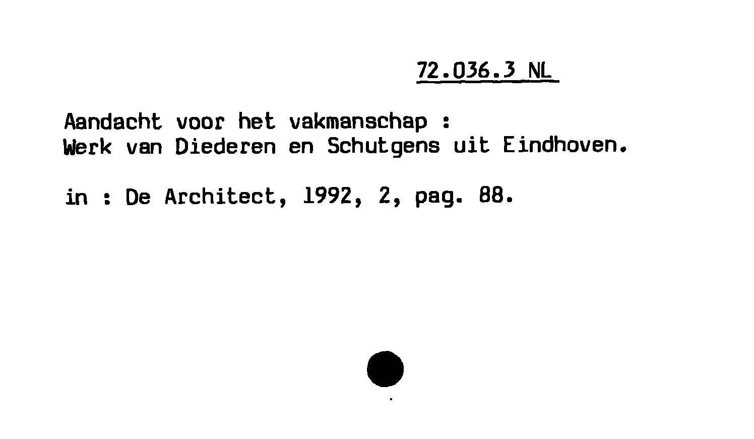 - Aandacht voor het vakmanschap : Werk van Diederen en Schutgens uit Eindhoven