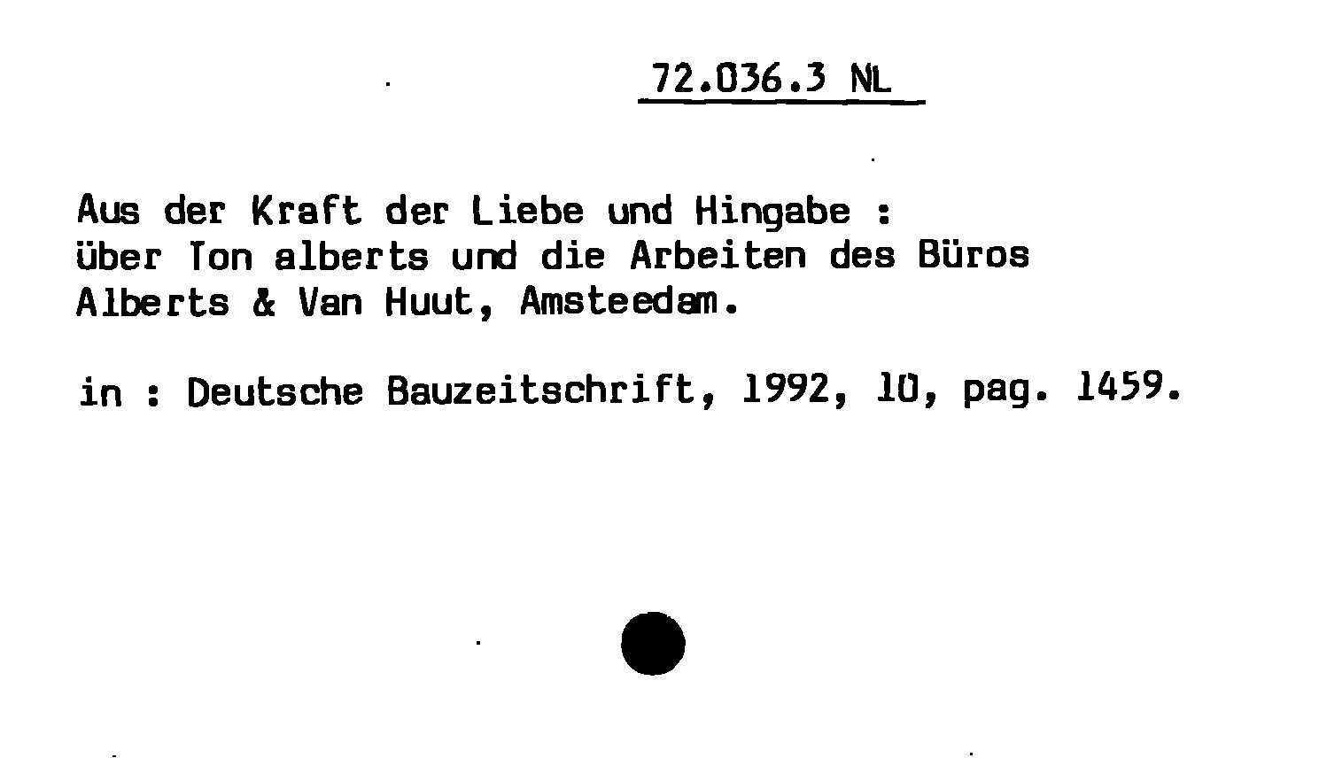 - Aus der Kraft der Liebe und Hingabe : über Ton alberts und die Arbeiten des Büros Alberts & Van Huut, Amsterdam