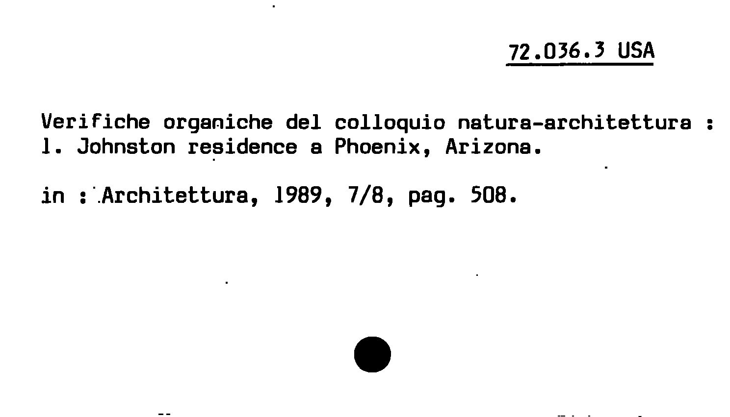 - Verifiche organiche del colloquio natura-architettura : 1. Johnston residence a Phoenix, Arizona
