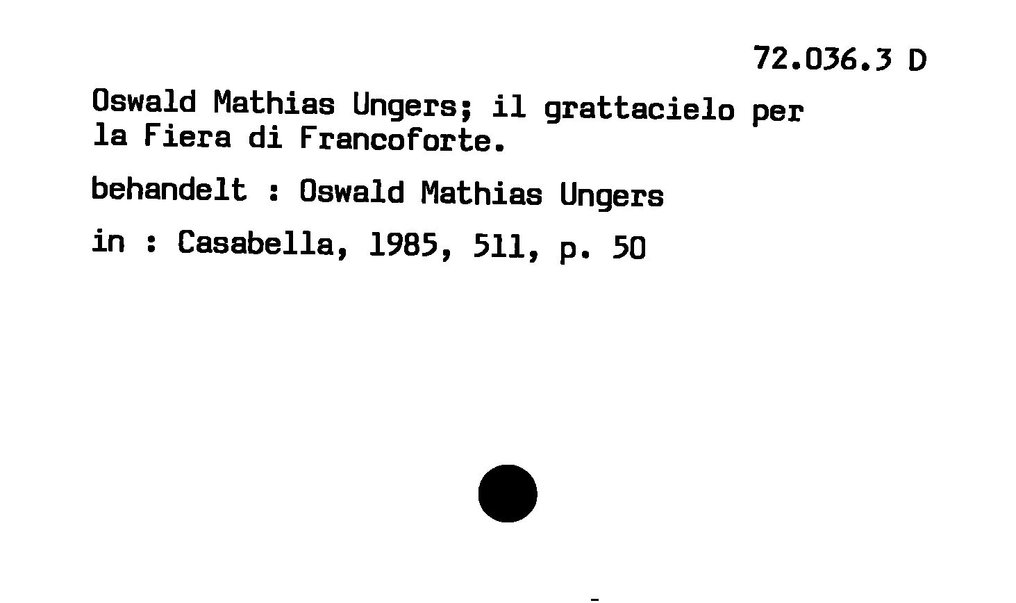 - Oswald Mathias Ungers : Il grattacielo per la Fiera di Francoforte