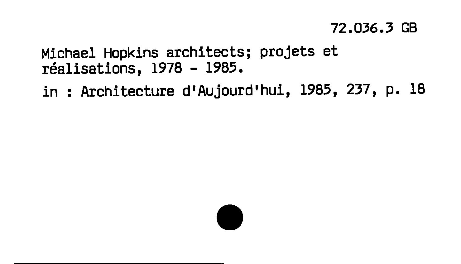 - Moichael Hopkins architects : projects et réalisations, 1978 - 1985