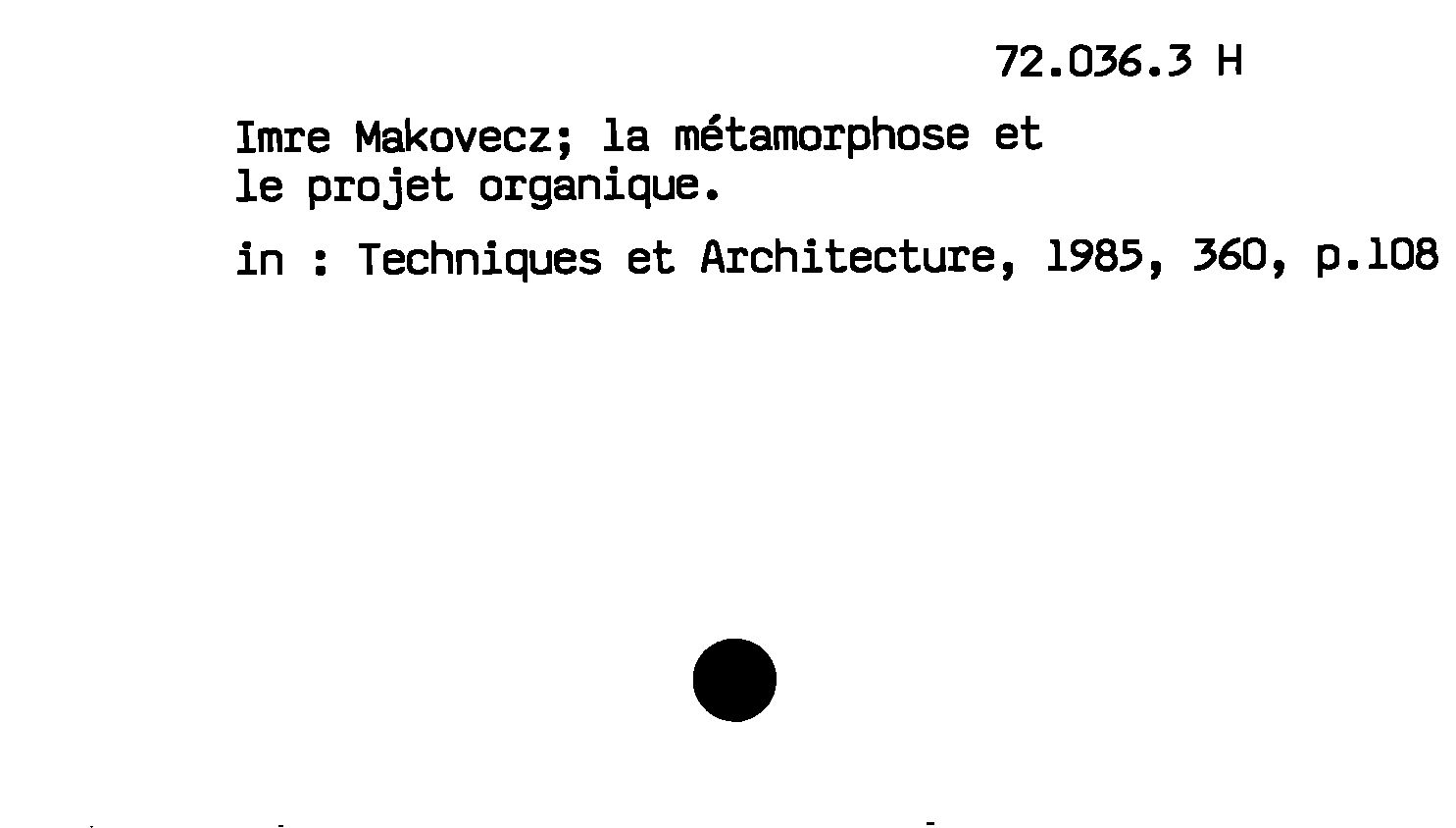 - Imre Makovecz : la métamorphose et Ie projet organique