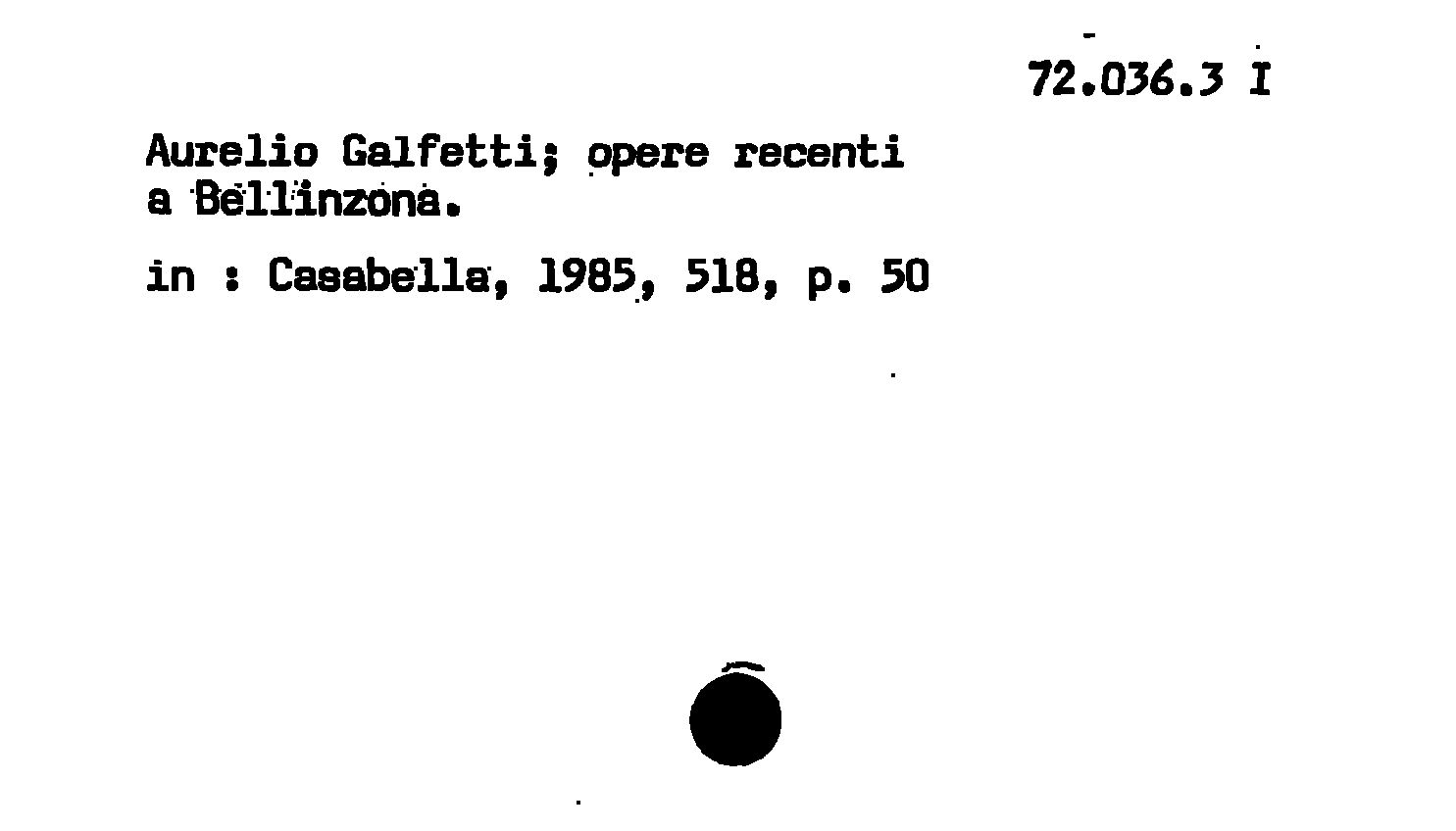 - Aurelio Galfetti : opere recenti a Béllinzona