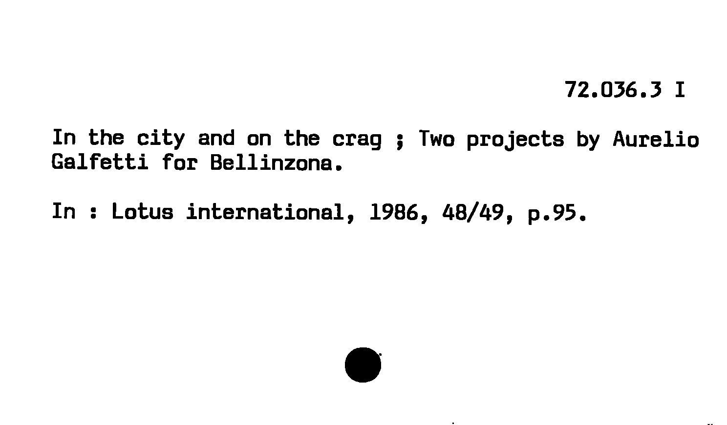 - In the city and on the crag : Two projects by Aurelio Galfetti for Bellinzona