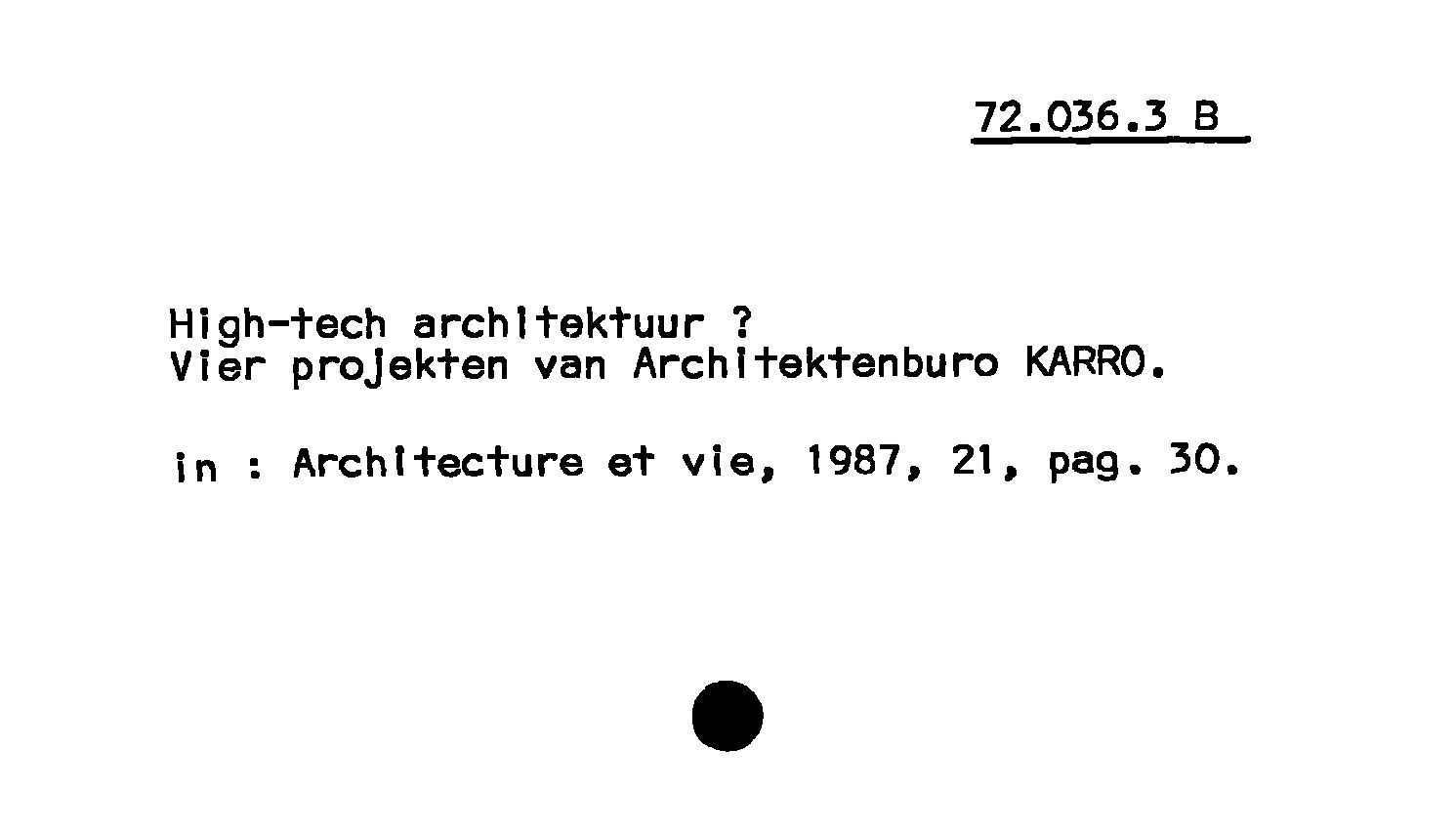 High-tech architektuur ? : Vier projekten van Architektenburo KARRO